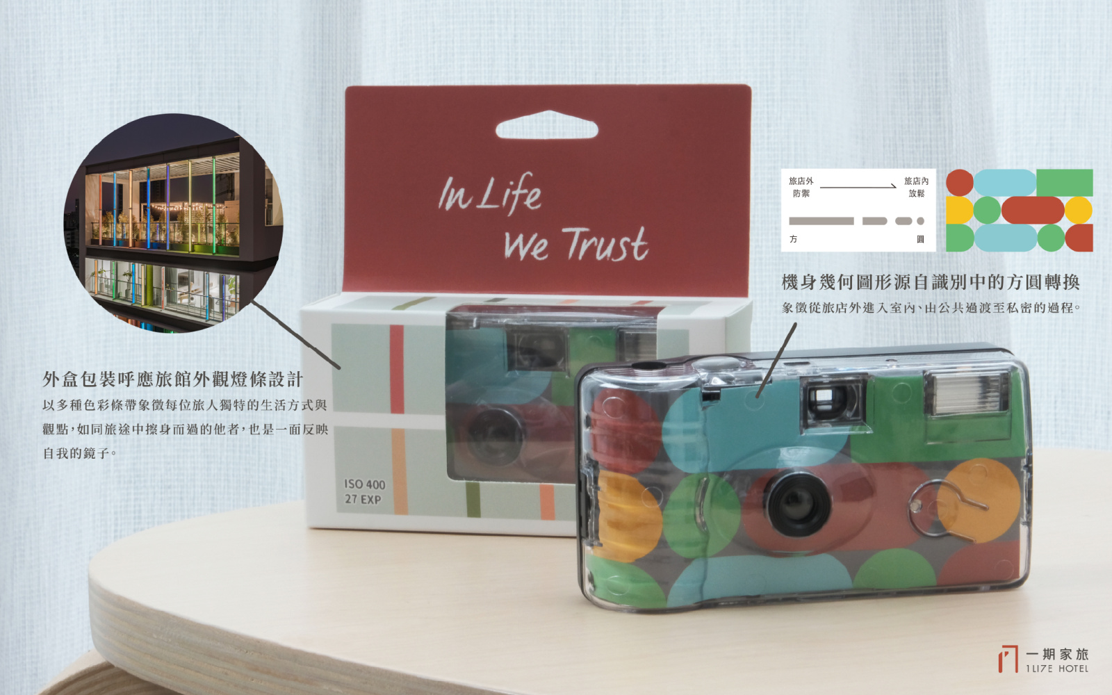 這一次我們把旅館外牆的燈條設計、品牌識別與色彩語言,通通收進這台底片相機裡。